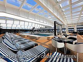 schönem Wetter. Oder der überdachte Hauptpool auf dem Lido-Deck. Das Glasdach